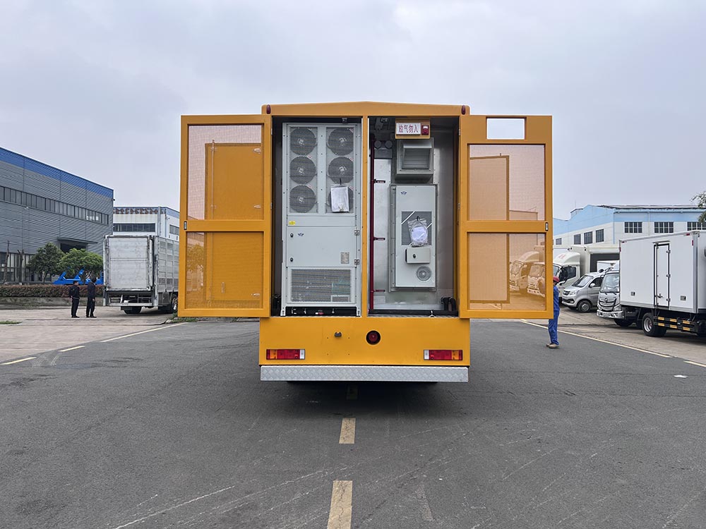 一、底盤配置: 采用東風DFH1310A9車身,配置玉柴DDi75E340-60發動機250KW馬力,國六排放標準,軸距1995+4600+1350(mm),整備質量30.87噸,額定載質量0噸,五擋變速箱,帶動力轉向,帶原廠空調,該車廂內裝有發電機組,變壓器,散熱設備等,主要用于處理突發事件的應急搶險供電;車廂頂部封閉且不可開啟;隨底盤選裝駕駛室,選裝限速裝置,限速89km/h;側面防護裝置材料:Q235B碳鋼,裙邊結構;后部防護裝置材料:Q235B碳鋼.連接方式:采用螺栓連接.后部防護斷面尺寸(寬×高)(mm):80×160,后部防護離地高度(mm):480;該車上黃牌,城區道路請注意限行標識。