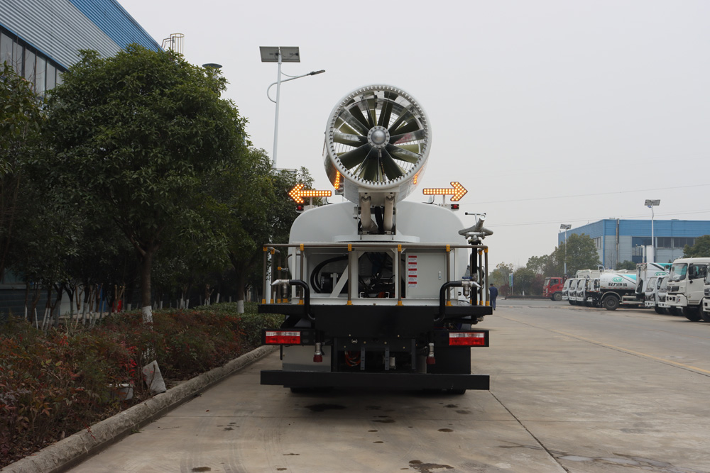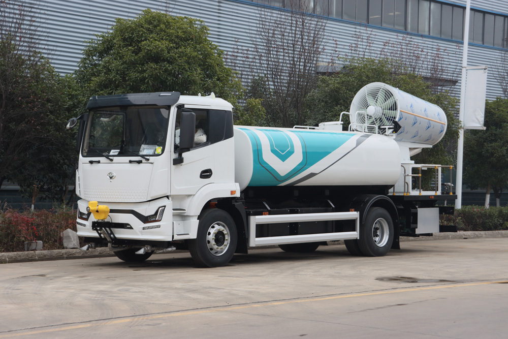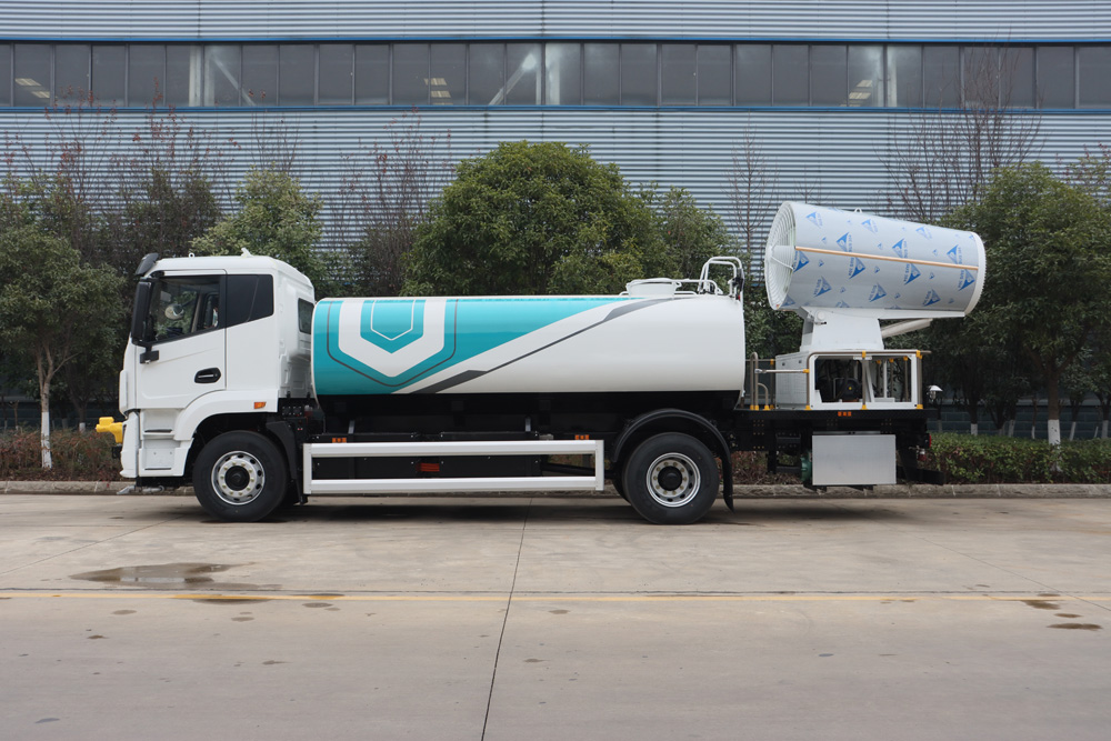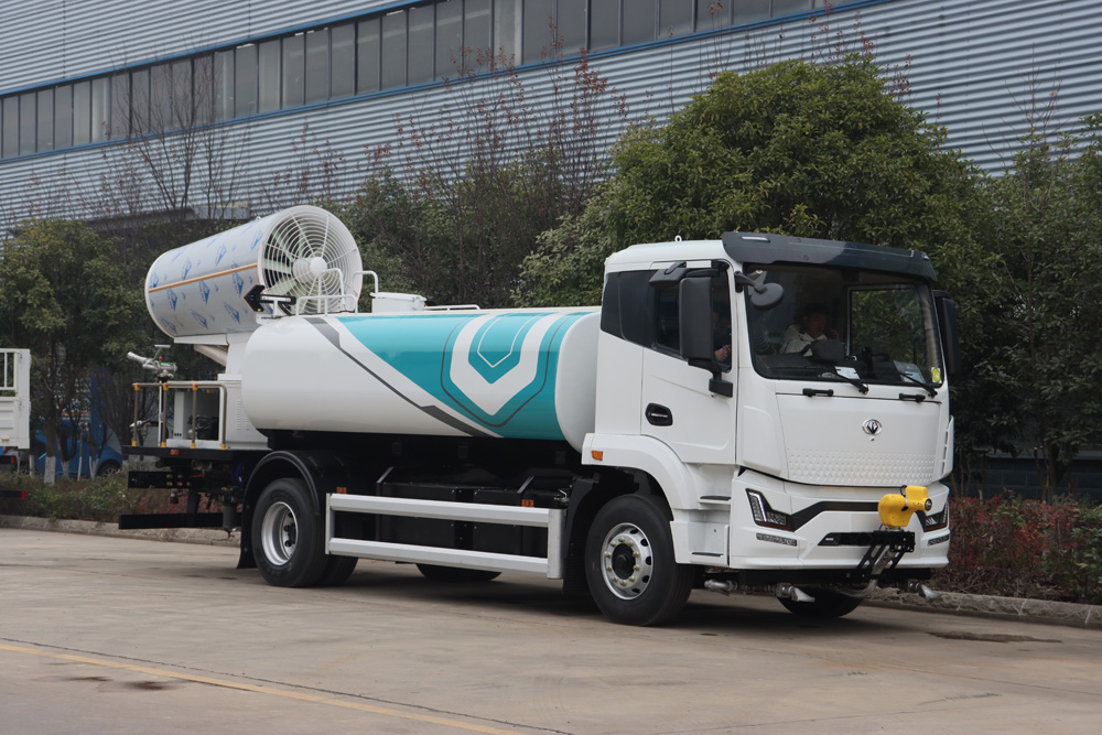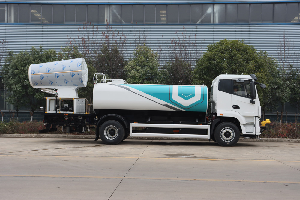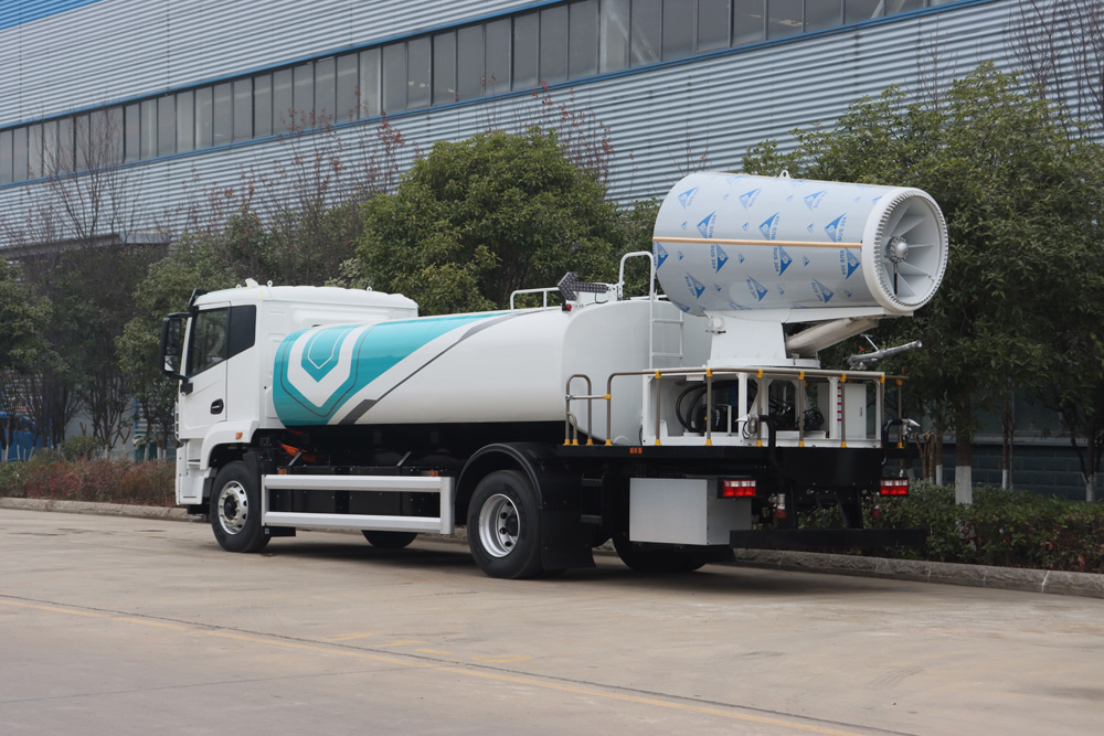 整車具備前噴、對沖、后灑、側噴、綠化水炮、霧炮,外接手動噴槍等多種作業(yè)功能,均可單 獨或組合使用,罐體有效容積 9.65m³ , 同級別行業(yè)最大;