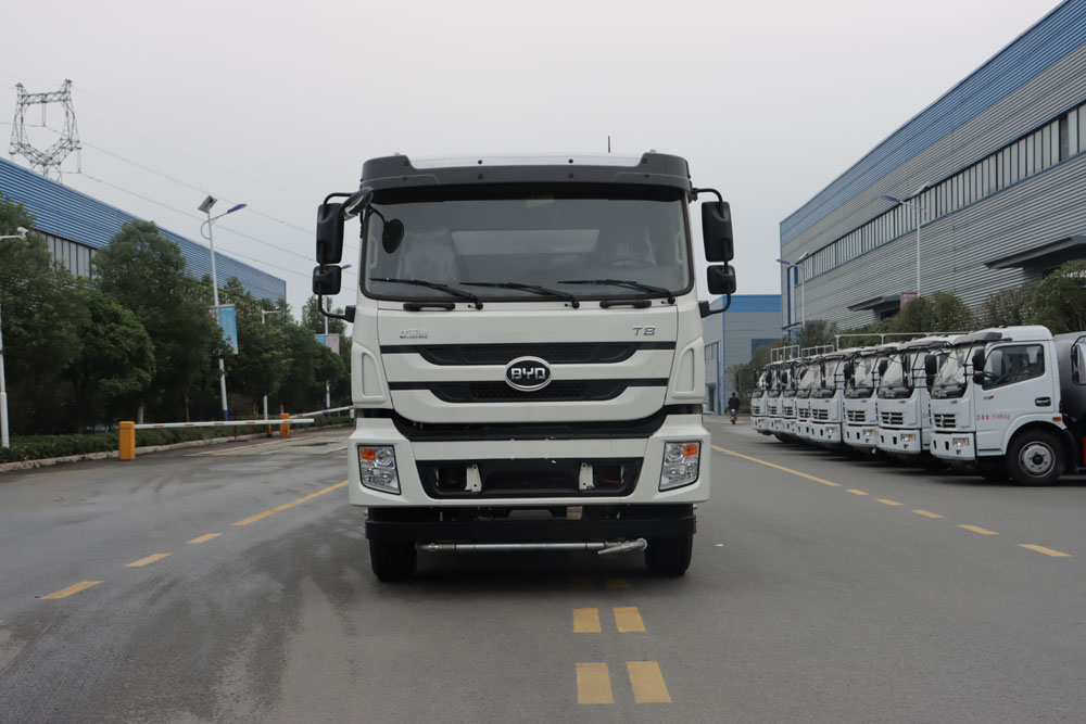 四、其他說(shuō)明: 比亞迪T8純電動(dòng)多功能抑塵車是在純電動(dòng)二類底盤的基礎(chǔ)上,加裝低壓沖洗、灑水系統(tǒng)、霧炮機(jī)組,由機(jī)械、液壓(氣路)、電器三部分合為一體的專用灑水作業(yè)車。 采用自吸式雙級(jí)離心泵,效率高、灑水寬度大、水槍射程遠(yuǎn),低壓水泵由底盤變速器取力器通過(guò)傳動(dòng)軸直接傳動(dòng)。霧炮機(jī)組由底盤電池帶動(dòng)霧炮風(fēng)扇電機(jī)、不銹鋼多級(jí)離心泵,進(jìn)行噴霧降塵工作。