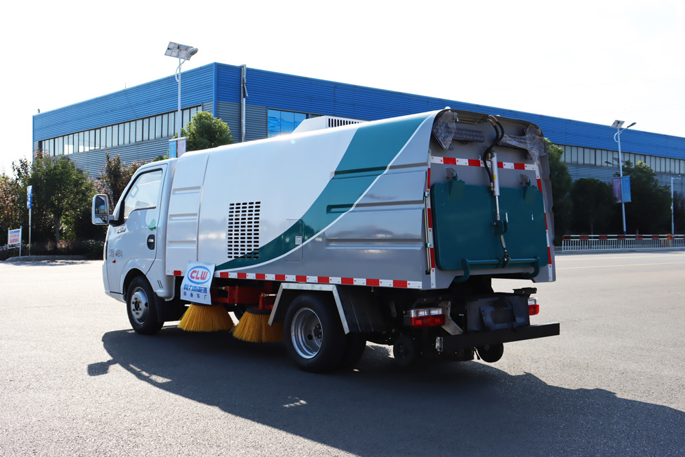 3、掃路車采用東風純電動二類汽車底盤改裝,加裝風機、清水箱、垃圾箱、左右立掃、帶噴水桿的寬吸嘴、掃盤降塵系統、液壓系統、專用裝置電控系統和副車架等改裝而成。