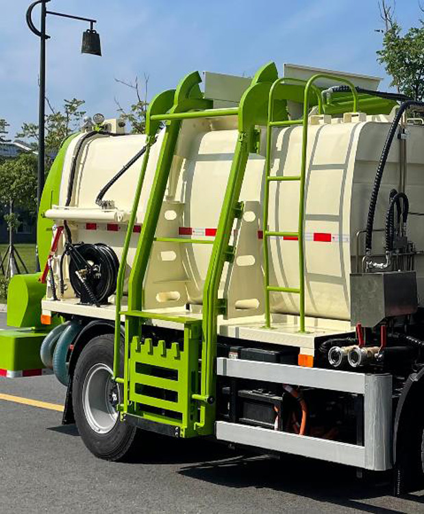 垃圾箱可實現(xiàn)箱內(nèi)餐廚垃圾固液的初步分離,并采用大容積污水箱,提高產(chǎn)品裝載量;