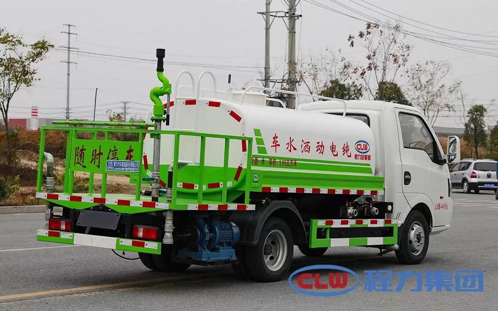 3)灑水車采用東風(fēng)純電動二類汽車底盤改裝,具有對沖、后灑、側(cè)噴、高炮等功能。