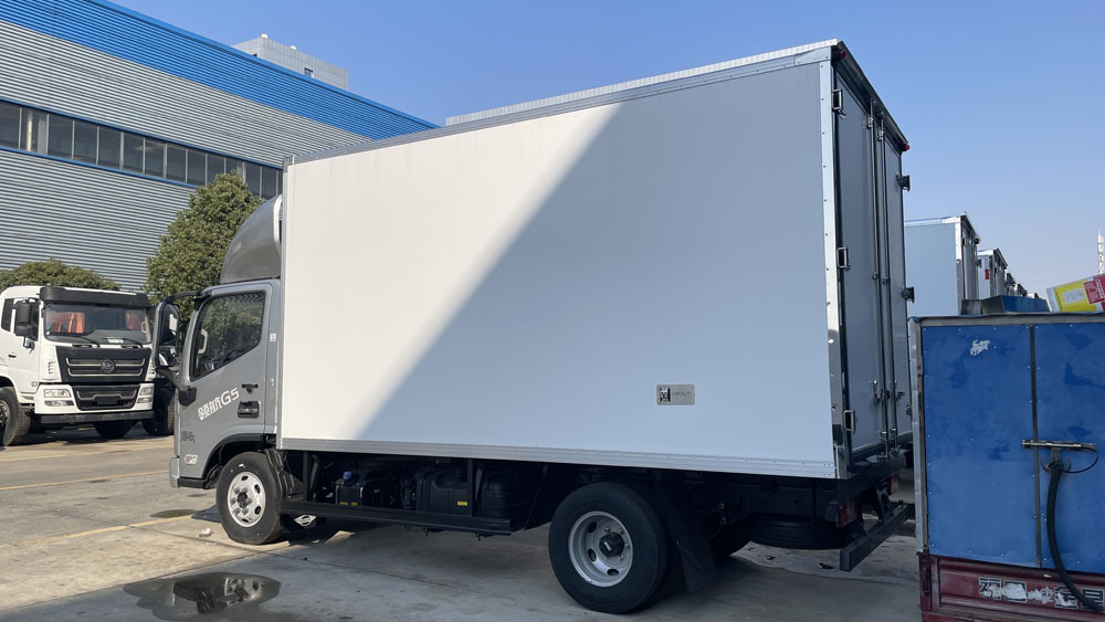 二、廂體配置:采用我司《晶龍工藝》專利技術——1200噸液壓加熱固化設備一體成型生產線制造,廂體保溫技術達到國家A級標準,廂體尺寸:3800×1900×1980(mm)。工藝特點:1、廂板采用全密封樹脂膠粘連聚氨酯發泡板高壓加熱固化而成,厚度8cm;2、廂板內外面料為2.5mm厚新款納米玻璃鋼(不吸光,隔熱性好,硬度強,抗氧化);3、粘連輔料為玻璃纖維絲布;4、無空隙填充聚氨酯發泡保溫材料;5、全密封樹脂膠粘連;6、預埋實木加固廂體;7、防銹處理槽鋼框架支撐;8、鋁合金包邊、不銹鋼包角;9、內部加裝LED照明燈及廂體示寬燈;10、后門框、鉸鏈、鎖件均為不銹鋼材質;11、后門加裝防撞膠塊;12、采用三元乙丙橡膠密封條。