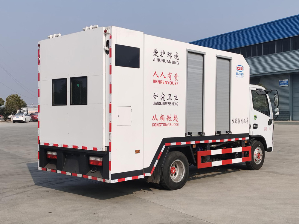 四、其他說(shuō)明: 該車(chē)裝備有垃圾桶清洗裝置,用于垃圾桶清洗作業(yè),操作簡(jiǎn)單,一體化操作,兩個(gè)垃圾桶2-3分鐘清洗完成。清洗車(chē)自帶清洗用水以及一個(gè)較大的廢水收集箱,清洗后的臟水不會(huì)流到街面上,整個(gè)清洗流程自動(dòng)化程度高,非常節(jié)省人力。