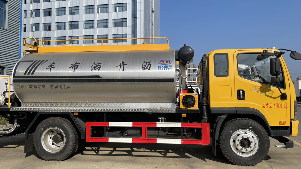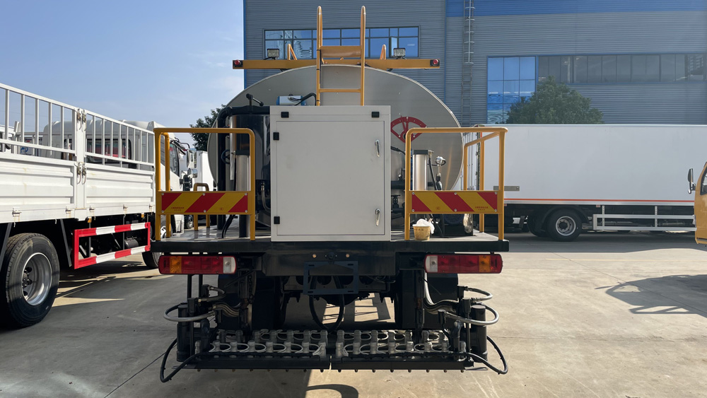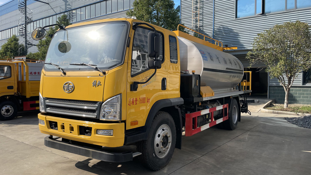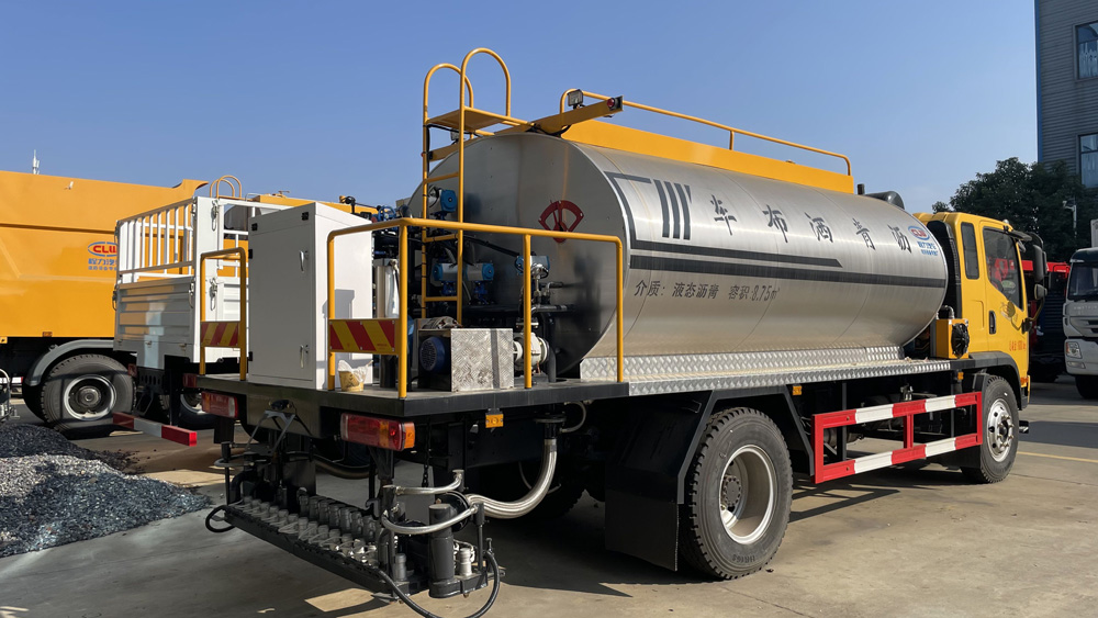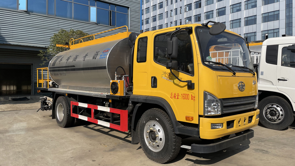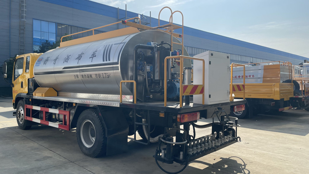 四、其他說明: 智能型瀝青灑布車是一種專業灑布乳化瀝青、稀釋瀝青、熱瀝青、高粘度改性等瀝青的半智能科技產品。用于修筑高等級公路瀝青路面 底層的透層油、防水層、粘結層的灑布。該灑布車由汽車底盤、瀝青罐體、瀝青泵送及噴灑系統、液壓系統、燃燒及導熱油加熱系統、控 制系統、氣動系統、操作平臺構成。