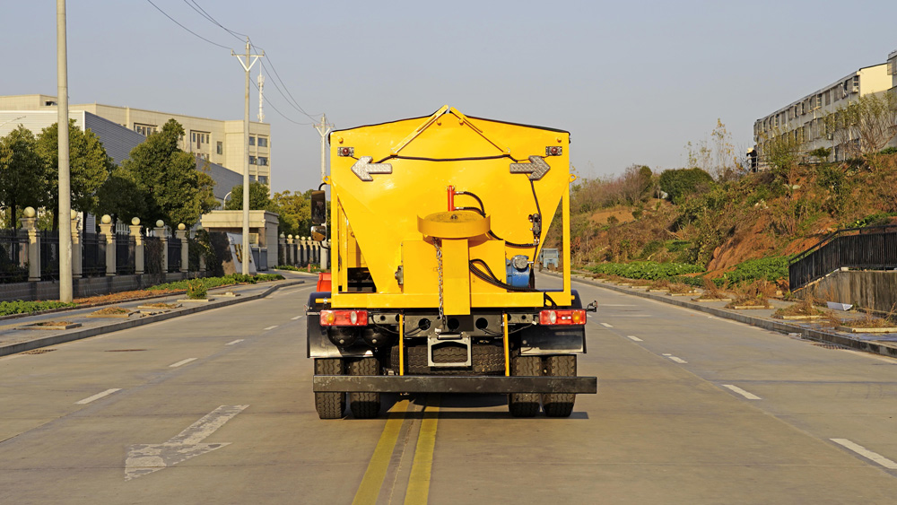 當后防護截面尺寸(mm):120×60時連接方式為螺栓連接;離地高度400mm;專用功能及裝置:該車主要用于冬季道路除雪、破冰、撒布作業,