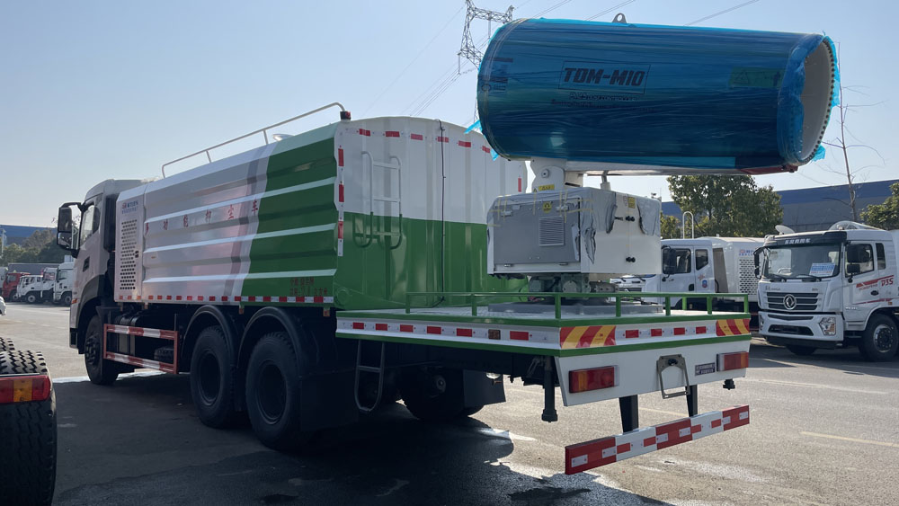 三、多功能抑塵車工作原理:霧炮機將水高壓霧化為50μm左右的細小顆粒,再通過遠程風炮將水霧送至100至120米半徑范圍內,作業5分鐘即可實現覆蓋區域面積4.5萬多平方米,是局部降低因PM2.5、PM10顆粒物超標而造成的霧霾污染的理想技術,是一種更先進、更科學、能耗更低、凈化效果顯著的新型空氣凈化技術。